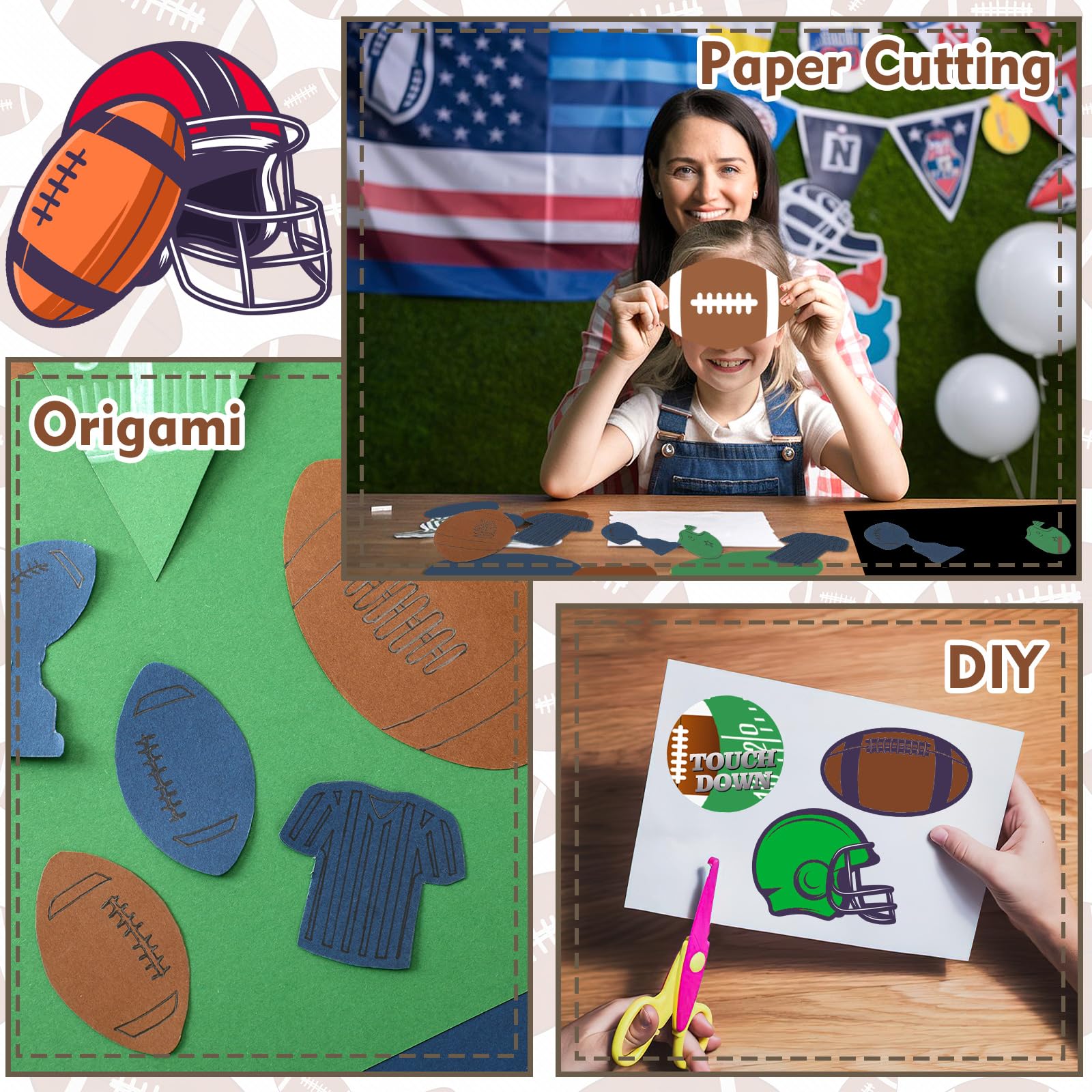 • Multi-Purpose: Football scrapbook paper is not only suitable for football theme parties, birthdays, weddings and seasonal decorations, but also the ideal material for scrapbooks, greeting cards, origami, gift packaging and various DIY handicrafts to meet your creative needs