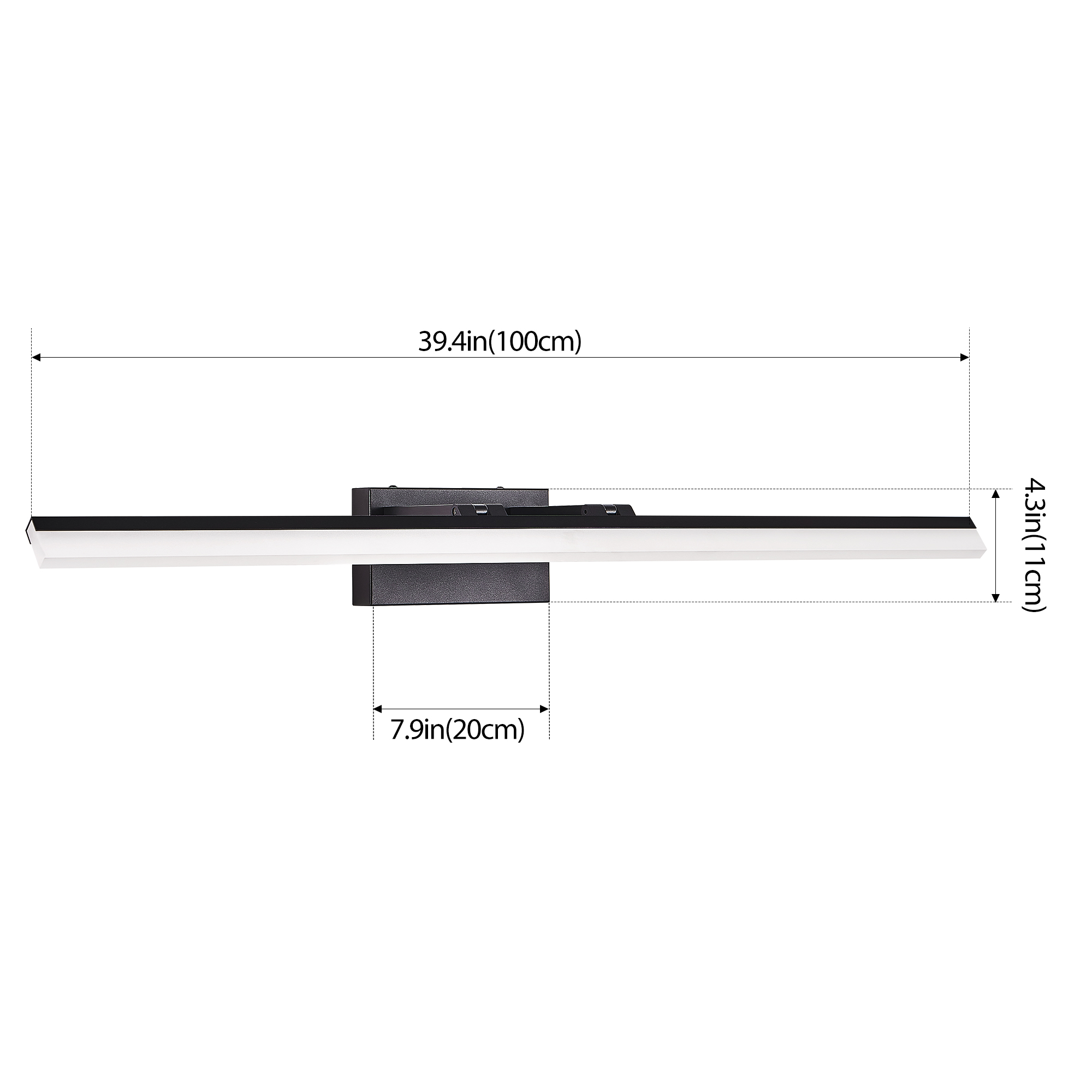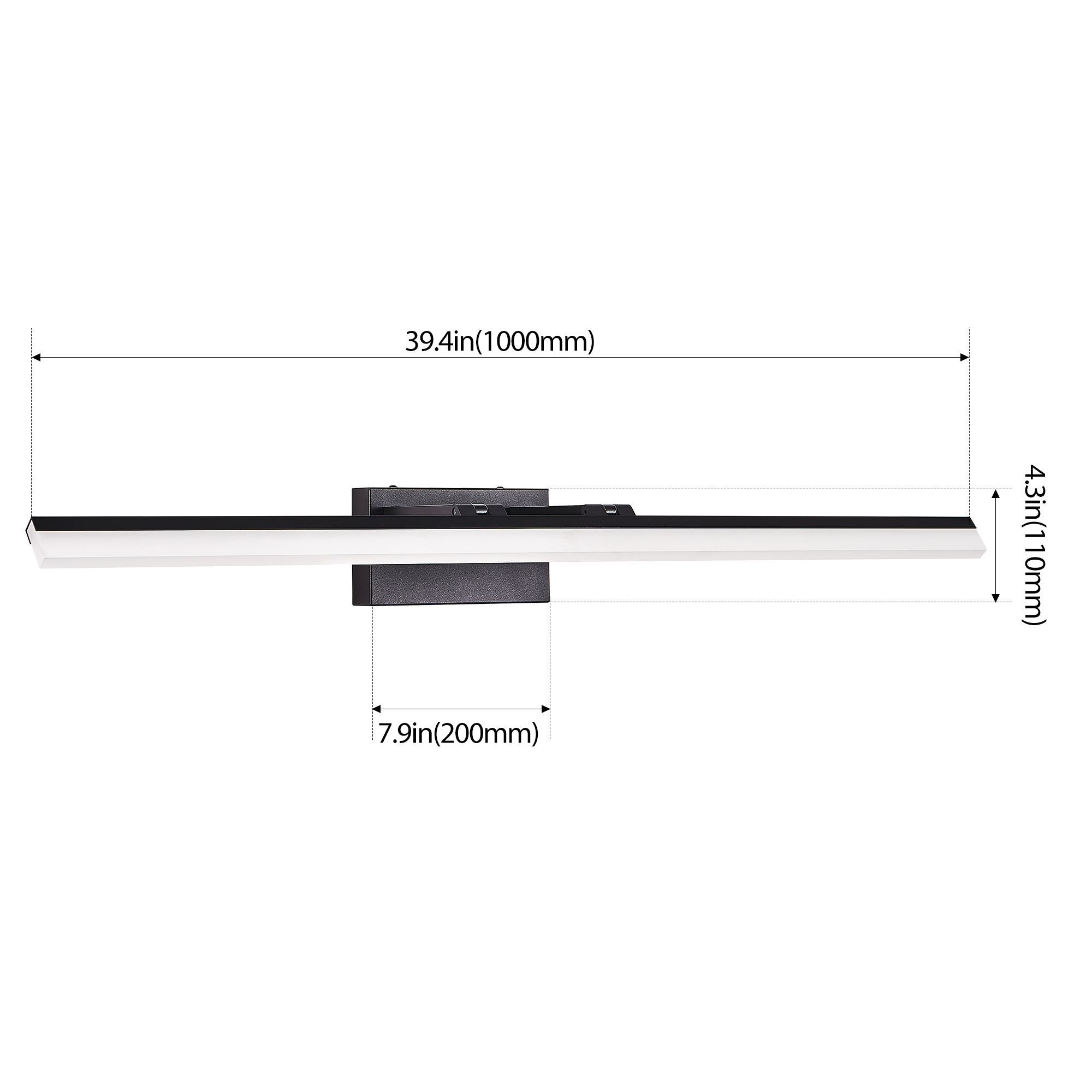 Sleek, Modern Design: The minimalistic, contemporary style with a black metal base and clean lines makes this vanity light a perfect fit for modern bathrooms, providing a stylish and understated look.