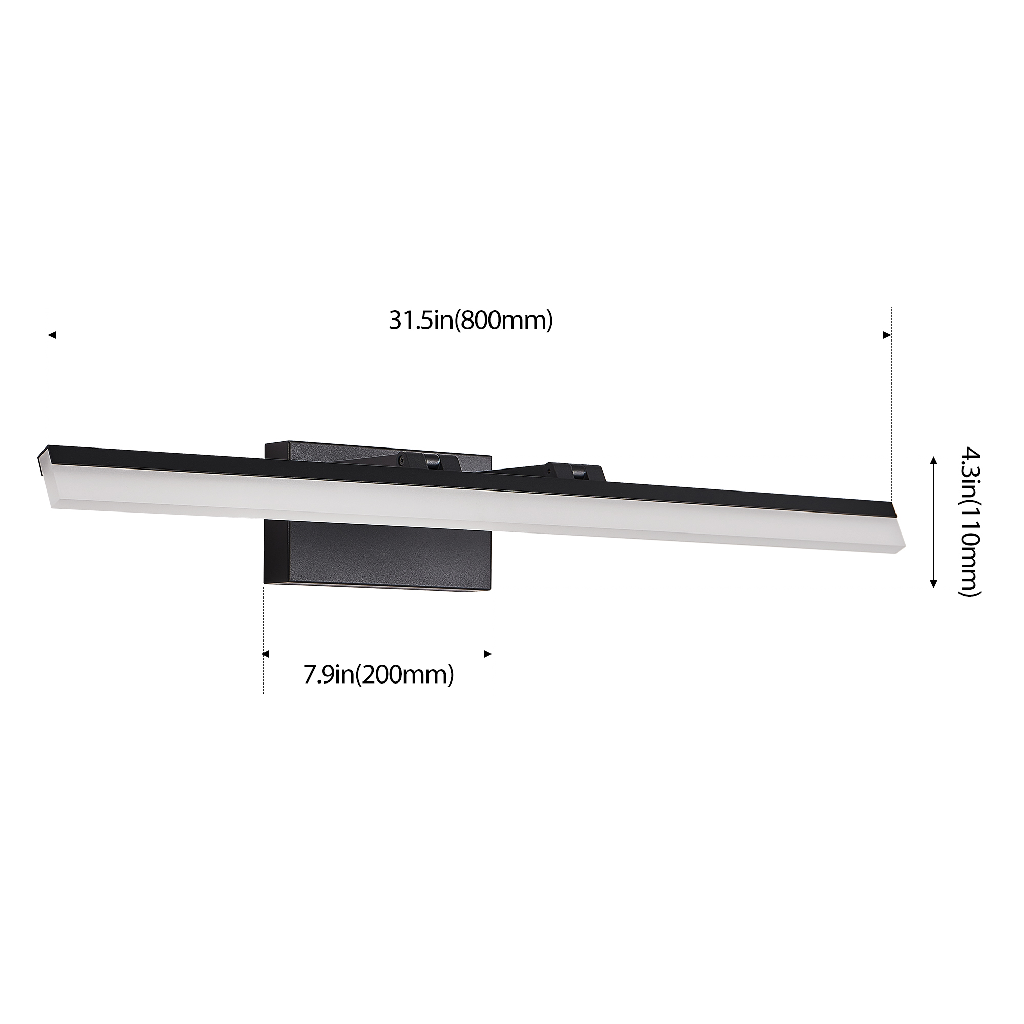 Sleek, Modern Design: The minimalistic, contemporary style with a black metal base and clean lines makes this vanity light a perfect fit for modern bathrooms, providing a stylish and understated look.